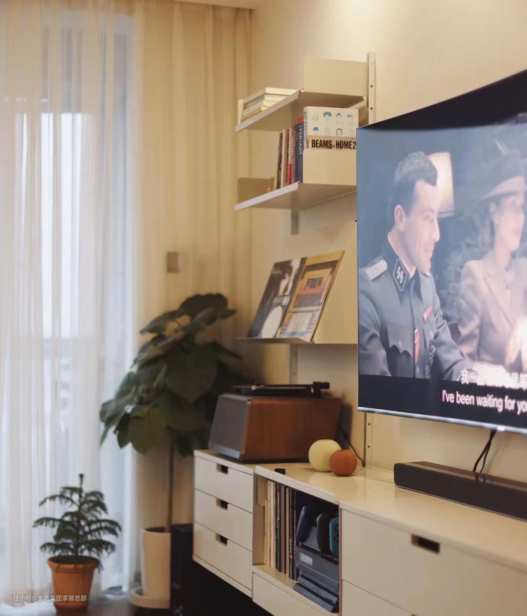 现在的装修设计都流行给家具做减法,以往的电视柜都喜欢做到底的地柜设计,一旦没设计好就会显得乏味沉闷。所以现在更流行将底部留空,以悬空的电视柜营造出一种轻盈的氛围感。家中有扫地机器人,可以从电视柜底部钻入清理,不用担心有卫生死角而堆积不明的灰尘。