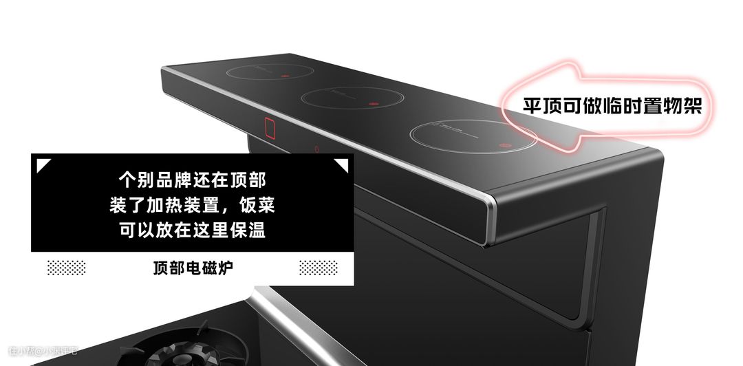 而且多数集成灶,会在油烟机顶部做一些小设计。把它做成可以用来放锅碗瓢盆的平台,相当于橱柜台面的延伸。用习惯了这片空间,还真就离不开了。