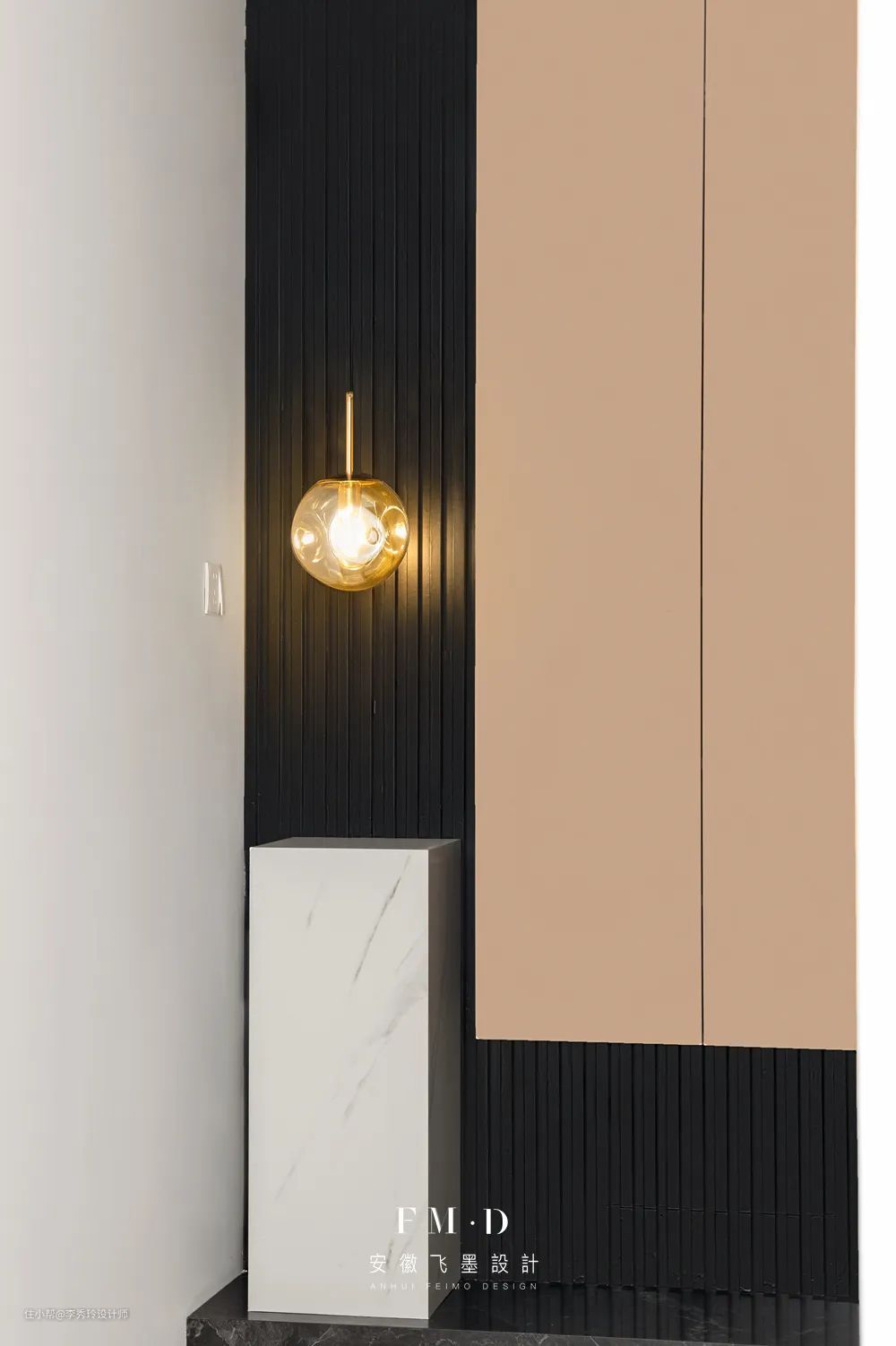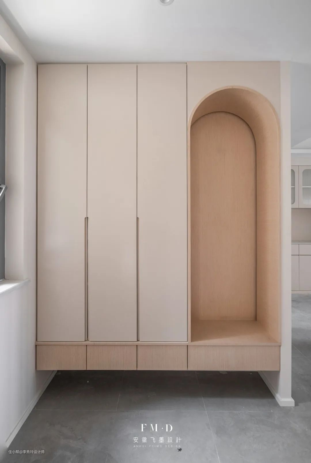 如果玄关面积局促,无处规划柜体,那么可以考虑嵌入式设计。