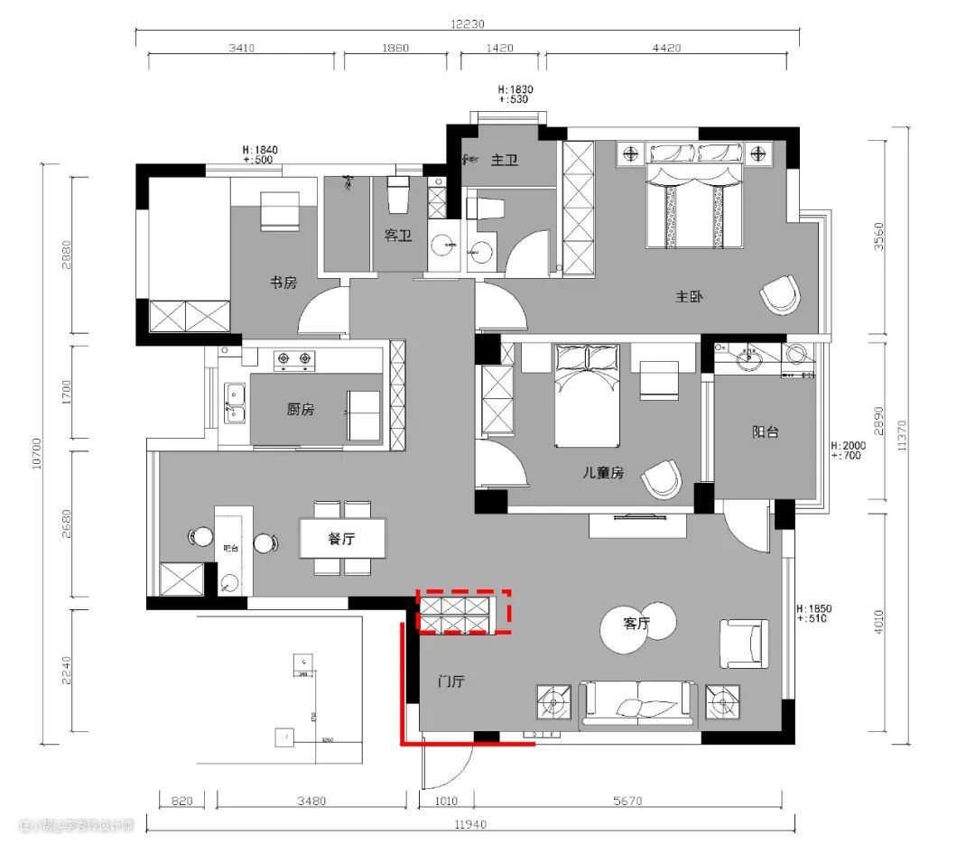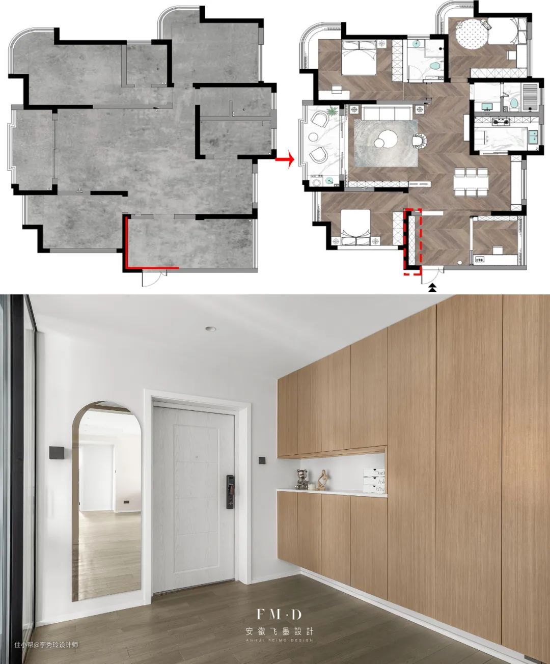 上面的布局主要说了柜体以及隔断的布局,玄关还可以增添挂衣区,挂包包、钥匙等。