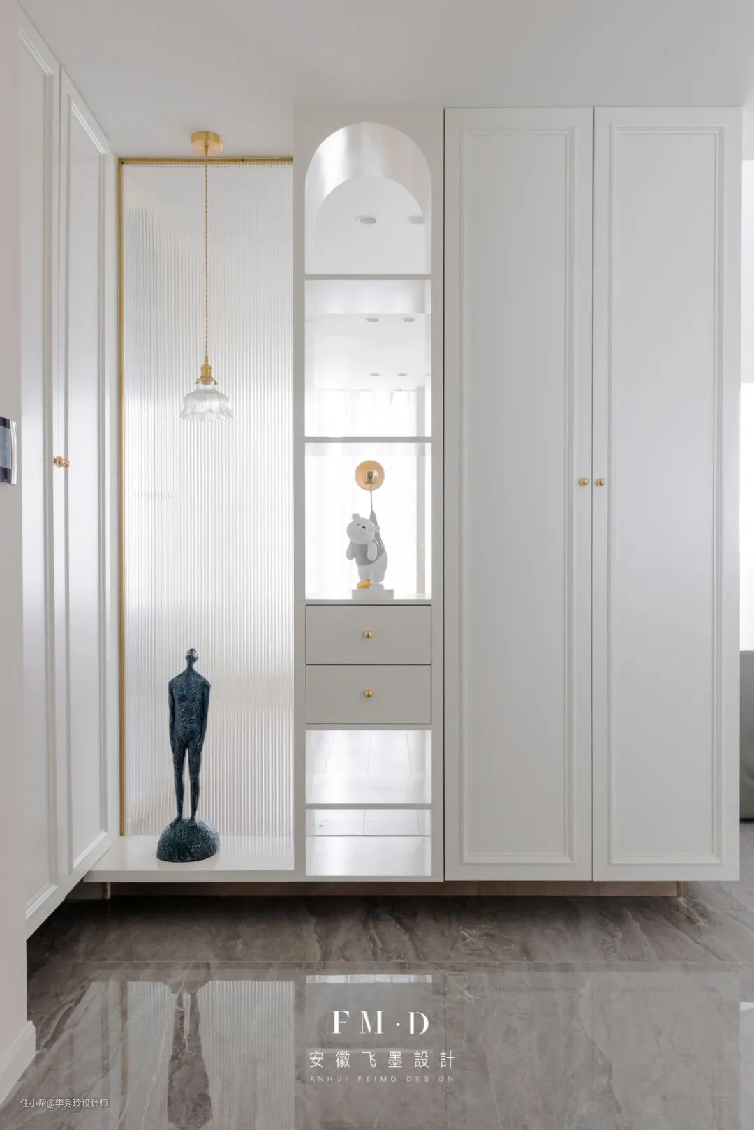 ②对于放在入户门对面的柜体,也可以嵌入透明材质,如长虹玻璃,有效提升采光。
