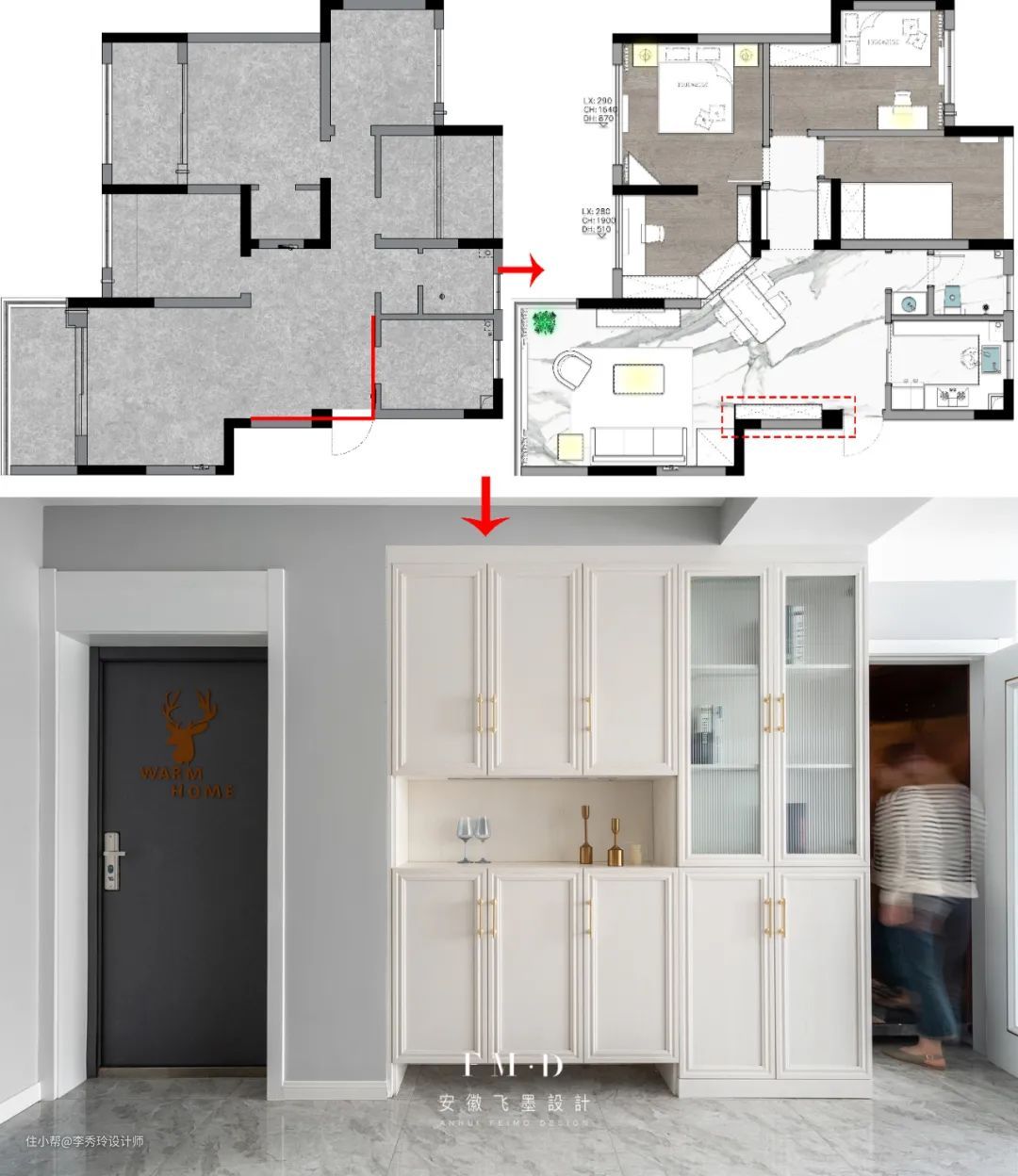 设计攻略:入户门离柜体之间至少保留80cm的通道距离。