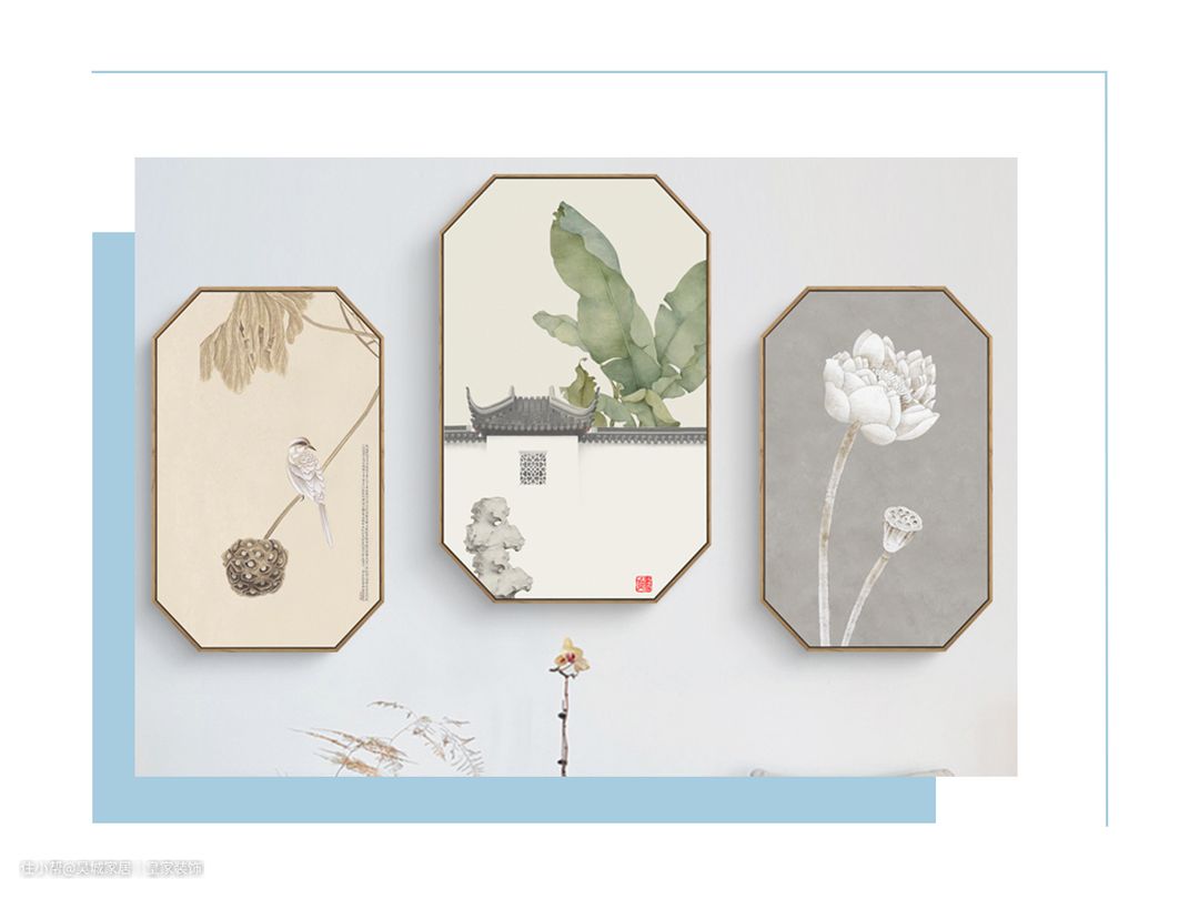 装饰背景墙的材质远不止上面六种,还有夹绢玻璃孔雀图、壁画、贴画等等。颜色以及使用技法的不同,营造不同的氛围,例如,金边点缀的水墨、山水画,是轻奢感,淡雅素色的山鸟画,是宁静祥和。