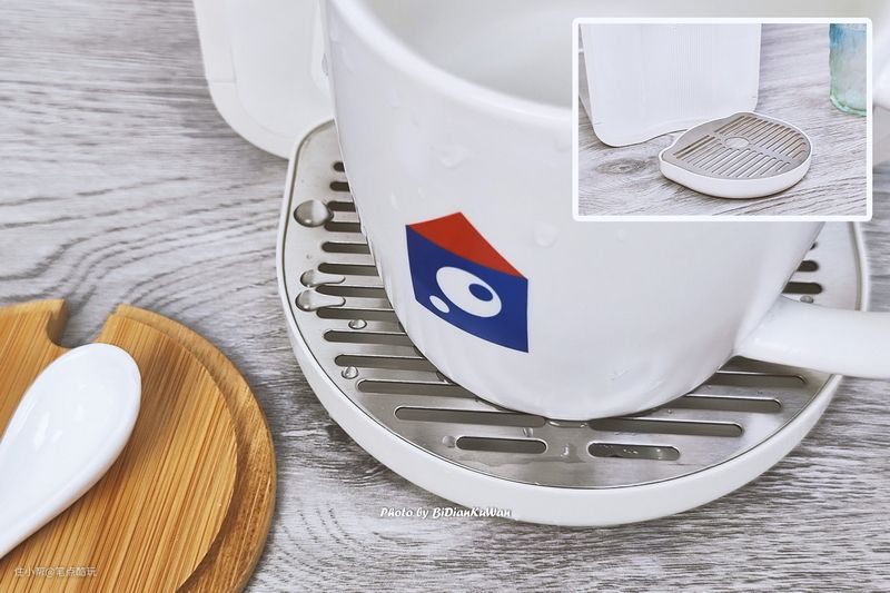 水饮类的机器常见的接水盒,魔凡用的是金属格栅座+磁吸式,接水盒面积比较大,直径大的咖啡杯也稳稳放上去。