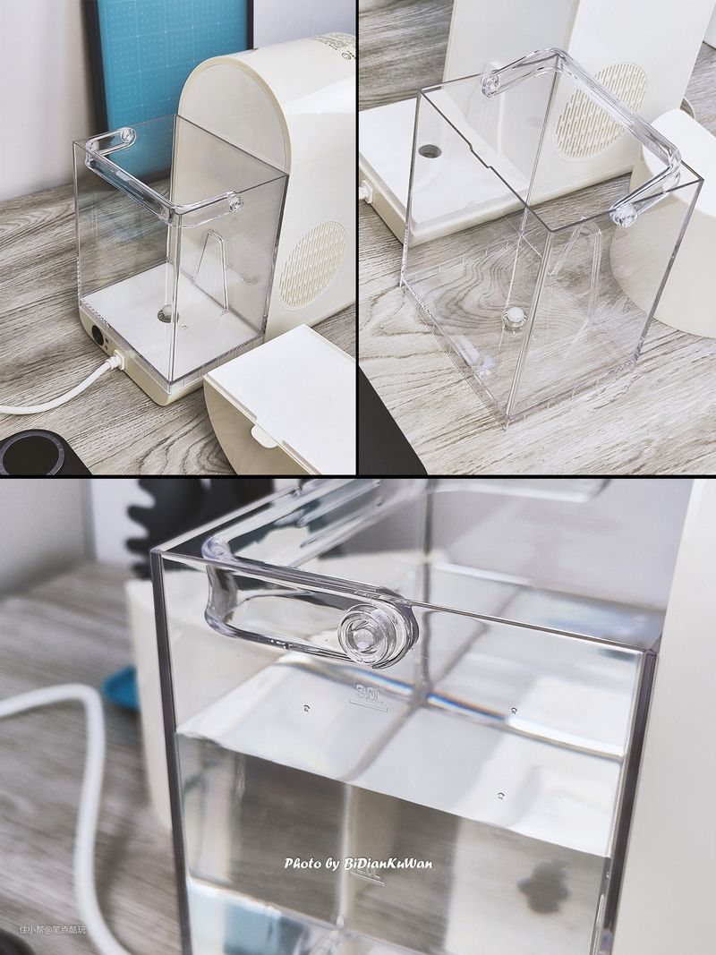 4,小户型的朋友注意一下:接水盒除磁力吸附之外,与机身无物理方式的连接(比如有插口),这意味着接水盒必须与机身置于同一台面之上,无法让接水盒单独悬空。