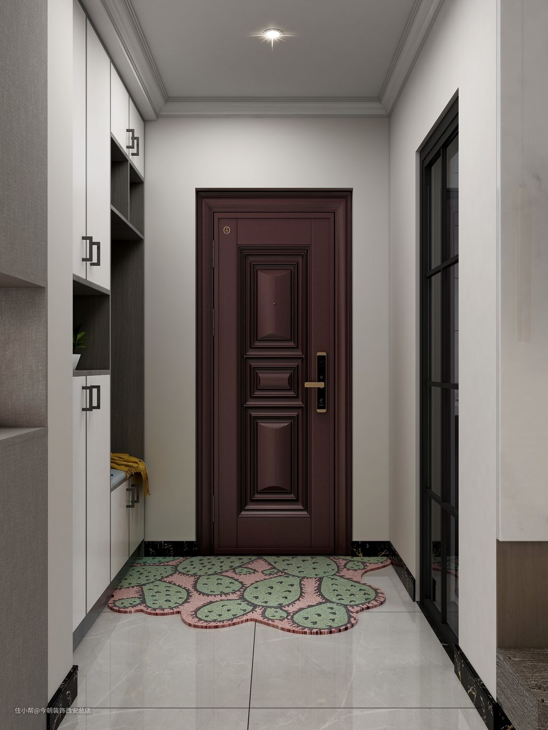 玄关原始过道较小,借助柜体内凹设计效果加强整体延展性及归家仪式感。右侧墙面则打造通顶玄关柜,设计高低组合柜,丰富层次感的同时,亦加强了各区的互动与联结。