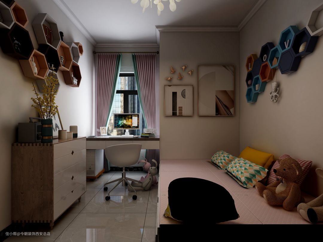 儿童房搭配粉色与黄色作为空间点缀色,呈现不一样的可爱俏皮气息,象征孩童天真无瑕的生命力,为孩子筑造了属于自己的一方天地。