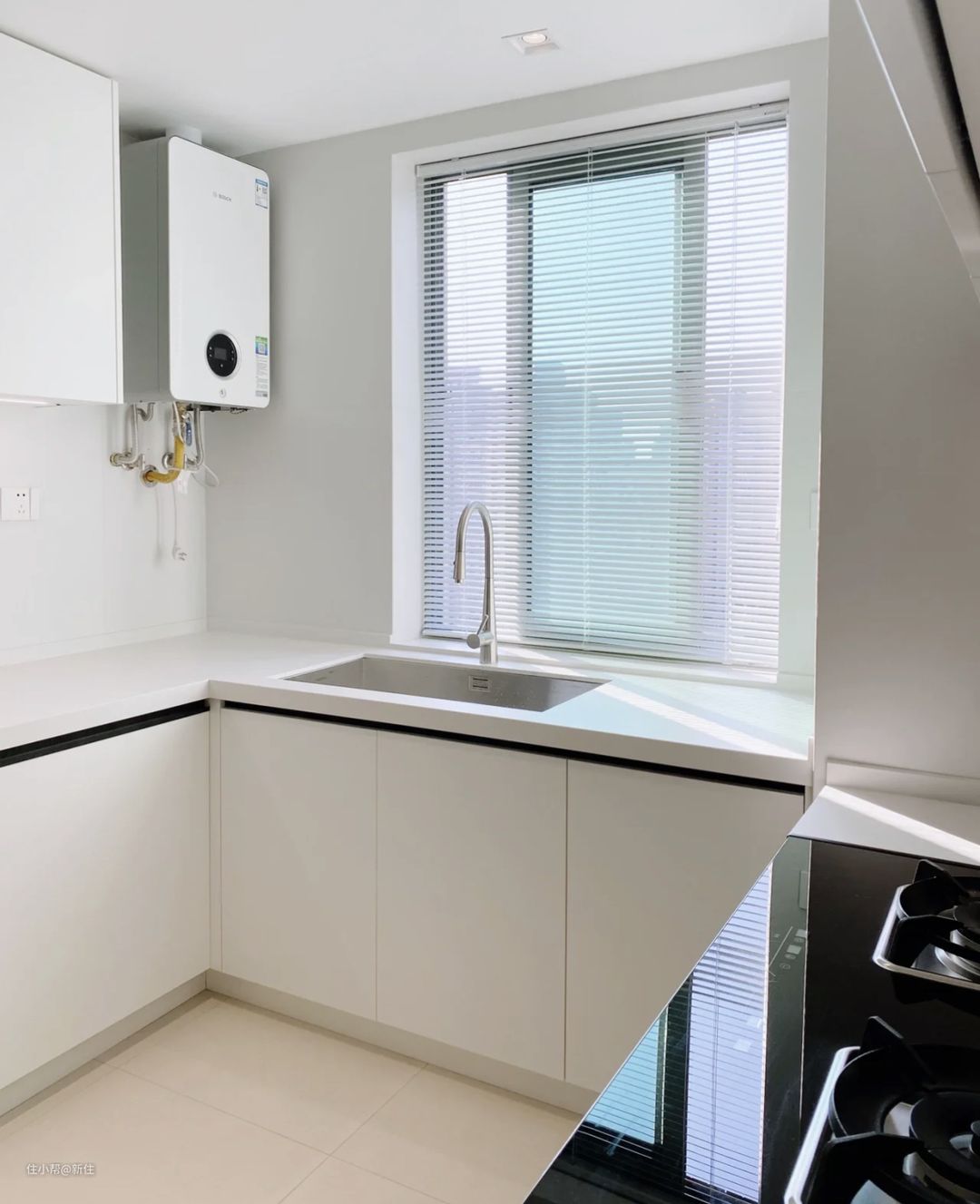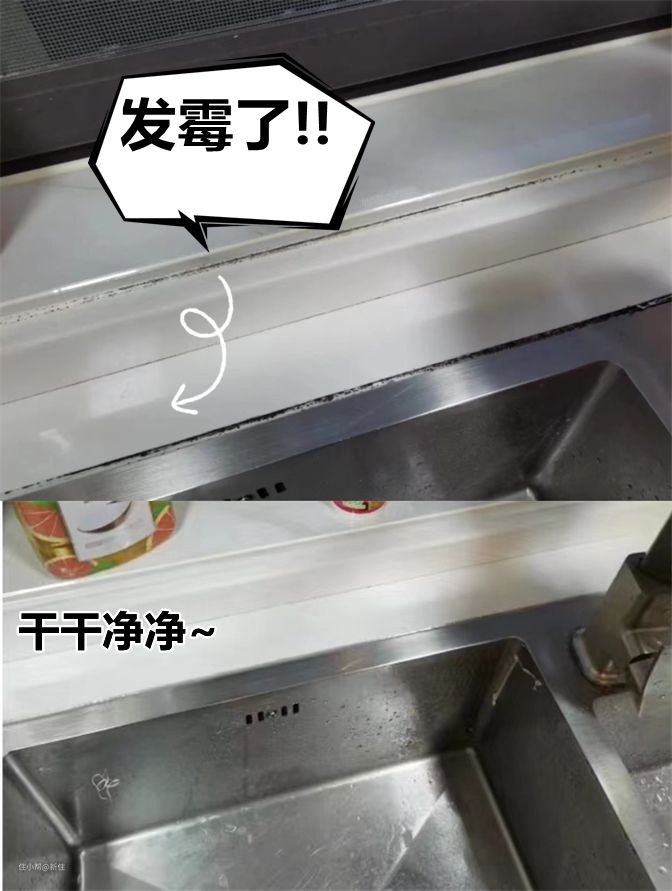 肯定有人会问,这样水会不会流进橱柜里?这样说吧,之前挡水条上的玻璃胶,会发霉,是因为长期见水,但也没见流进橱柜里,是因为胶条也是防水的。