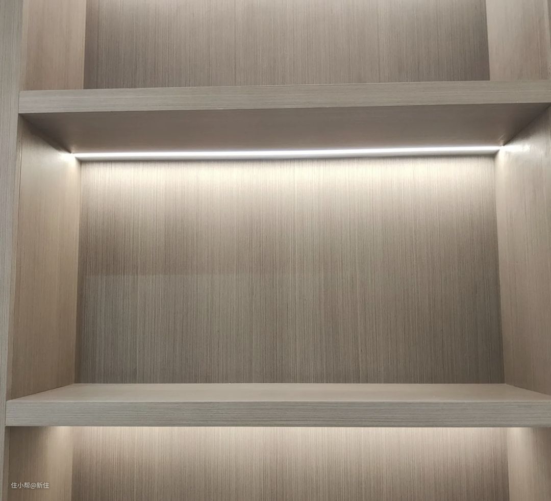 必须承认,柜子的开放格加上灯带后很好看,但做成嵌入式灯带,得提前刻槽、走线、预留电源,太麻烦了。