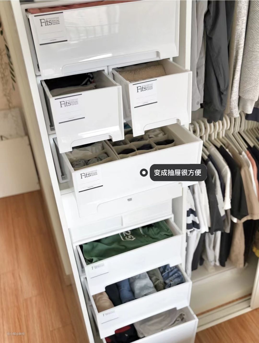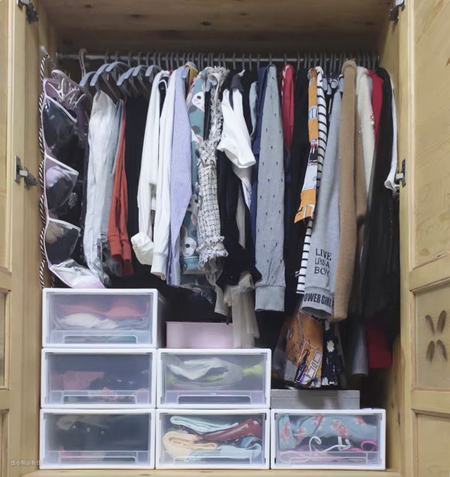 而且,也不用太拘于整洁度,尤其是不透明的箱子,关上抽屉,衣柜随时都是整洁的。