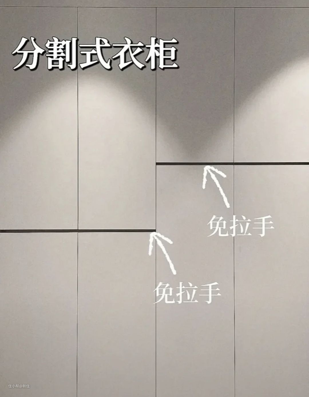 如果,考虑价格因素,分割式衣柜的把手做法可以延续,用在任何地方。