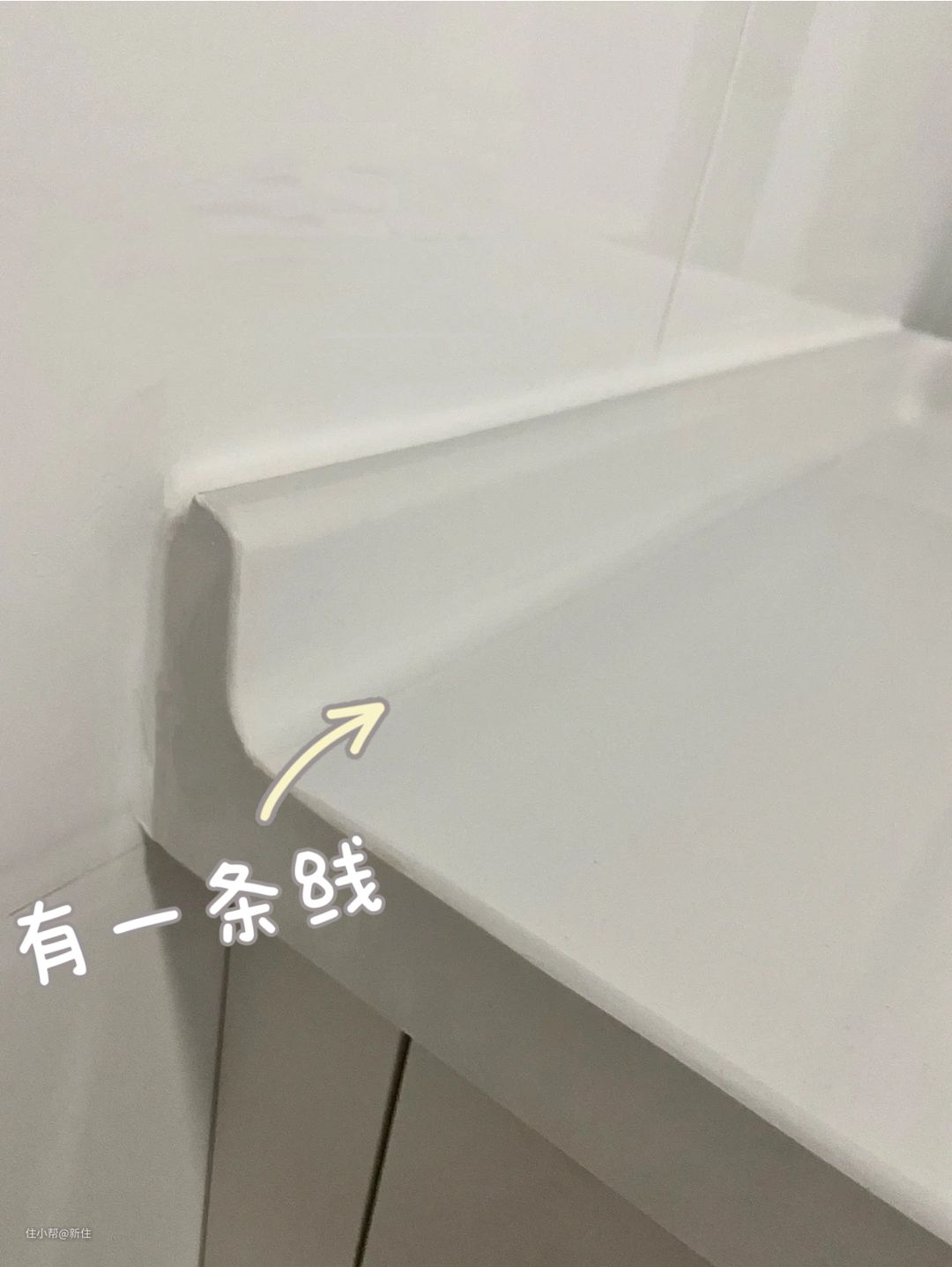 于是,后来有了圆弧挡水条,直角缝隙变成圆弧形后,卫生好打扫了许多,中间也没有厚厚的胶条,但也有它致命的缺点。