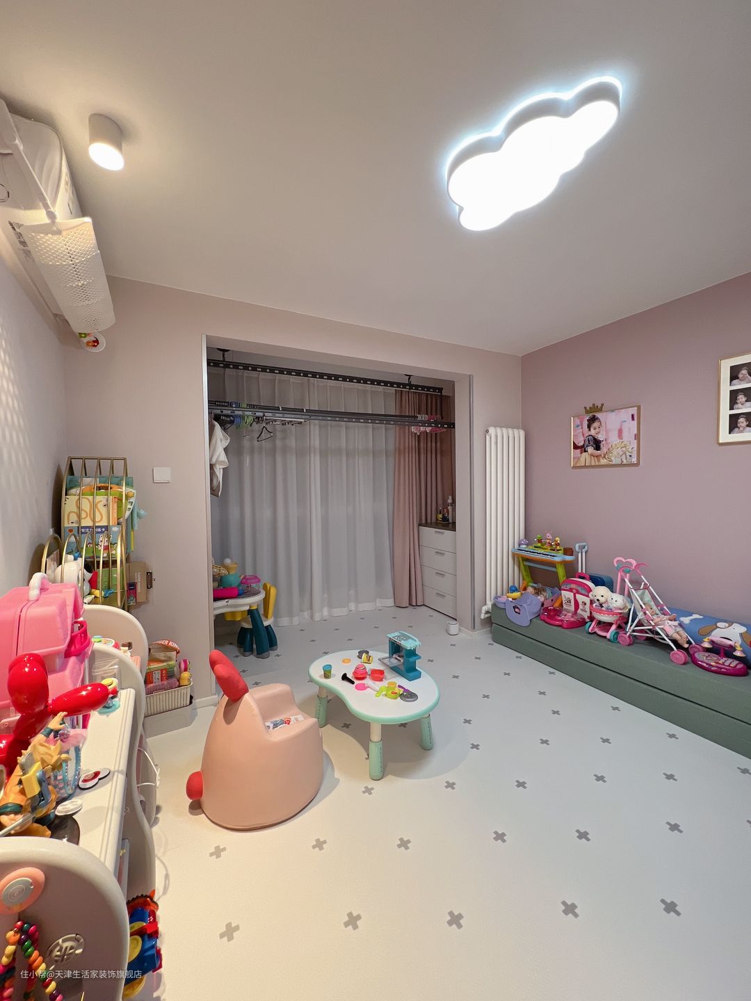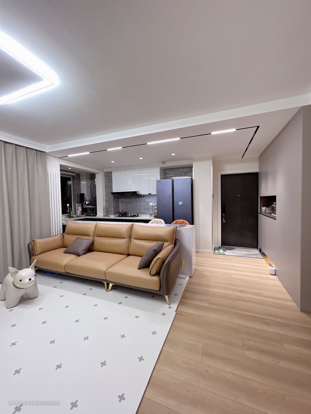 客厅作为家庭活动的主要空间,面积也是最大的,日常大多数时间都在客厅,有小朋友的家庭可以根据自己家的日常习惯选择取消传统茶几或替换成占地面积小一点的茶几,加大客厅的活动范围,小朋友日常活动那个也更加宽松安全。