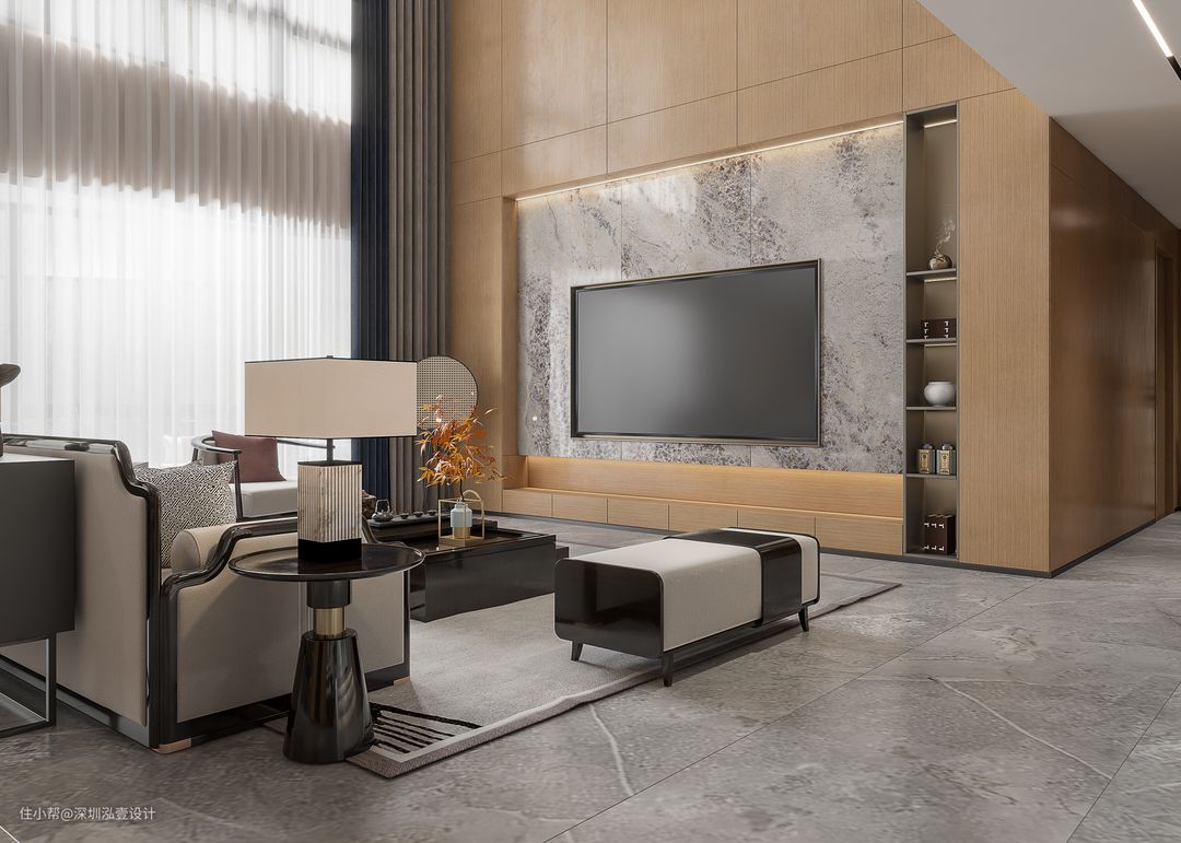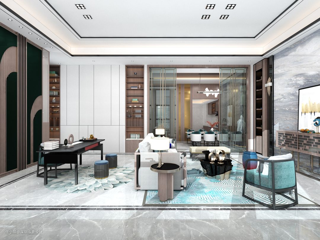 开放式存储空间可以产生客厅的背景墙,使物品与存储空间有良好的对应关系,并可以作为房屋整体设计的元素。定制成呼应整个客厅的造型会更好。