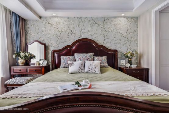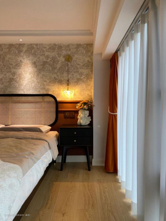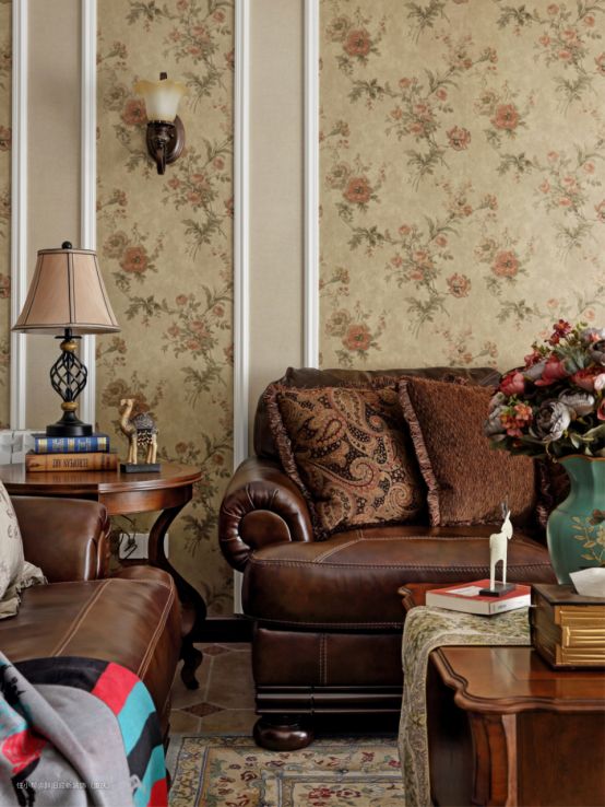 2、如果空间面积大,就可以尝试深色调、暖色调的壁纸做为墙面装饰。