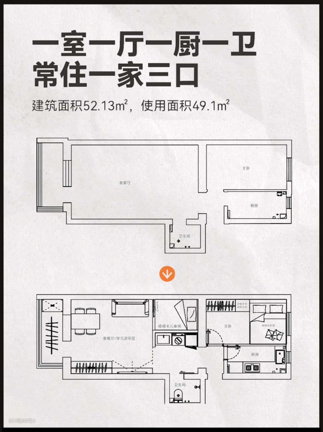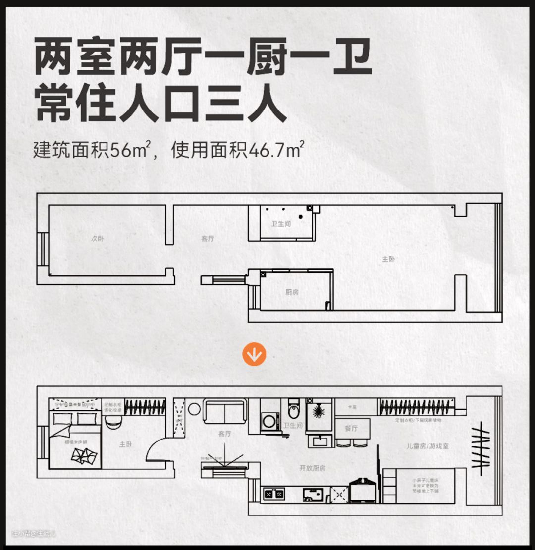 房子虽小,但在合理的布局、极致的收纳设计下,三代同堂既能享受天伦之乐,也能拥有独立空间。