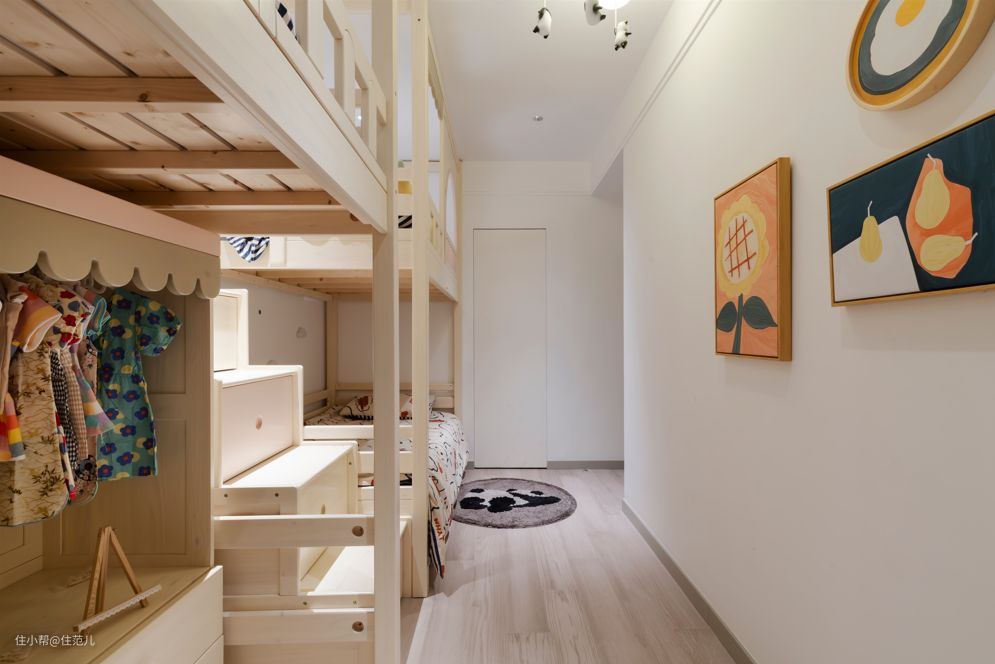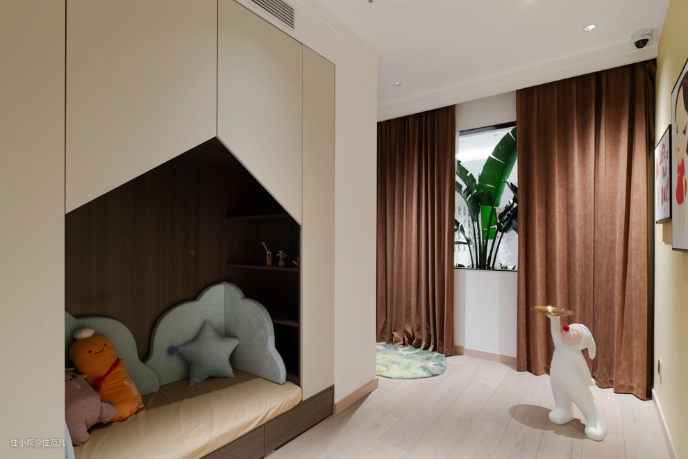 用帘子作为软隔断,成为了小朋友的“秘密基地”,不过分密闭,又有安全感。