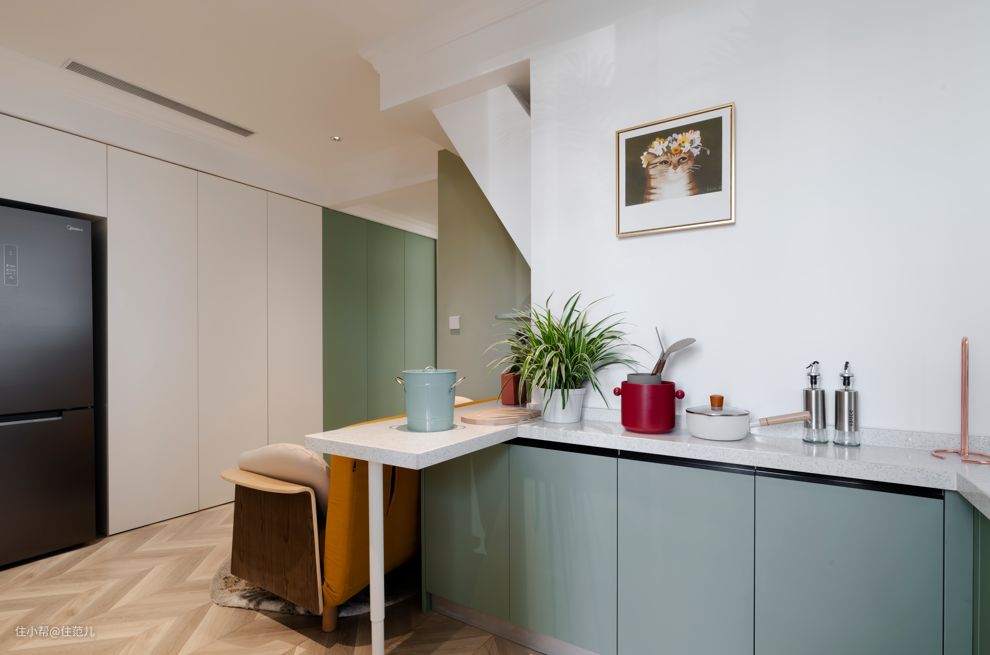最后设计师拆除了厨房隔墙,做成了通透的开放式;