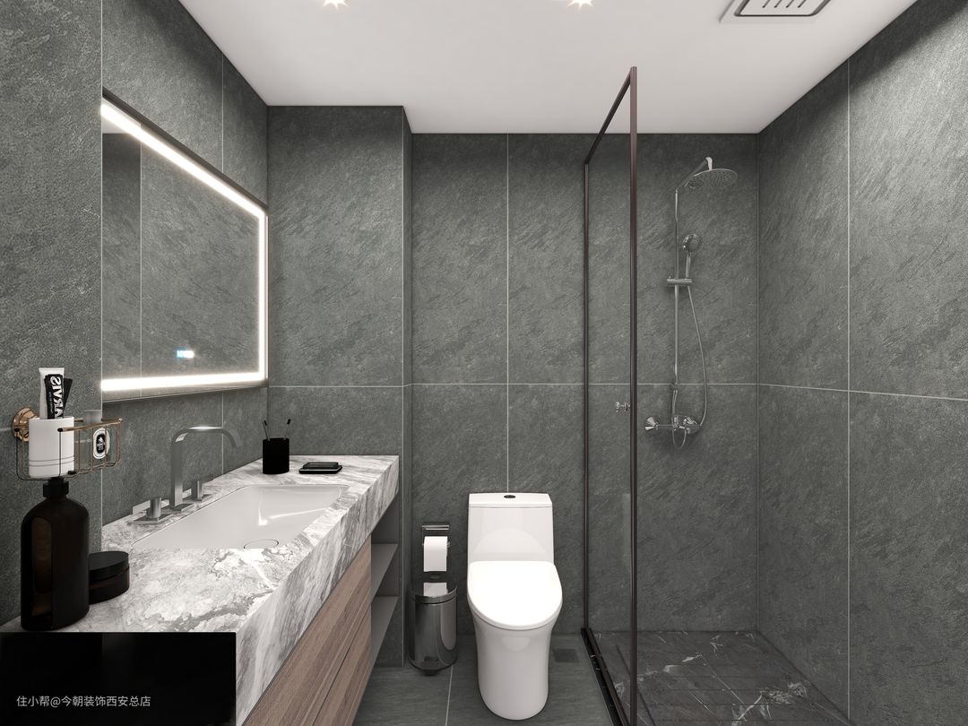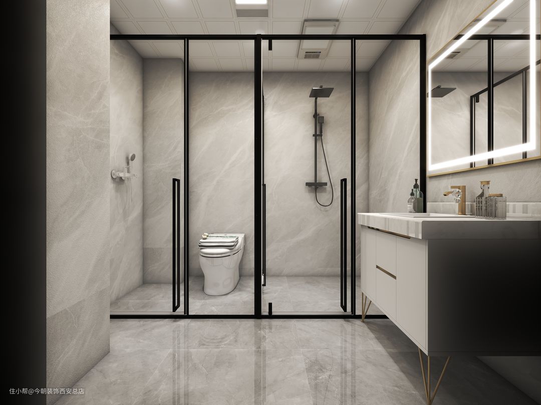淋浴区面积要大一些。马桶区做好灯光设计。