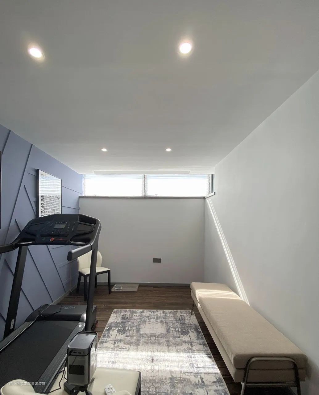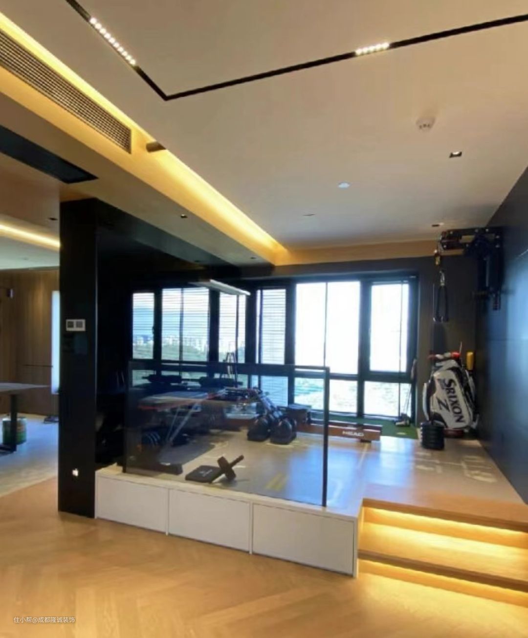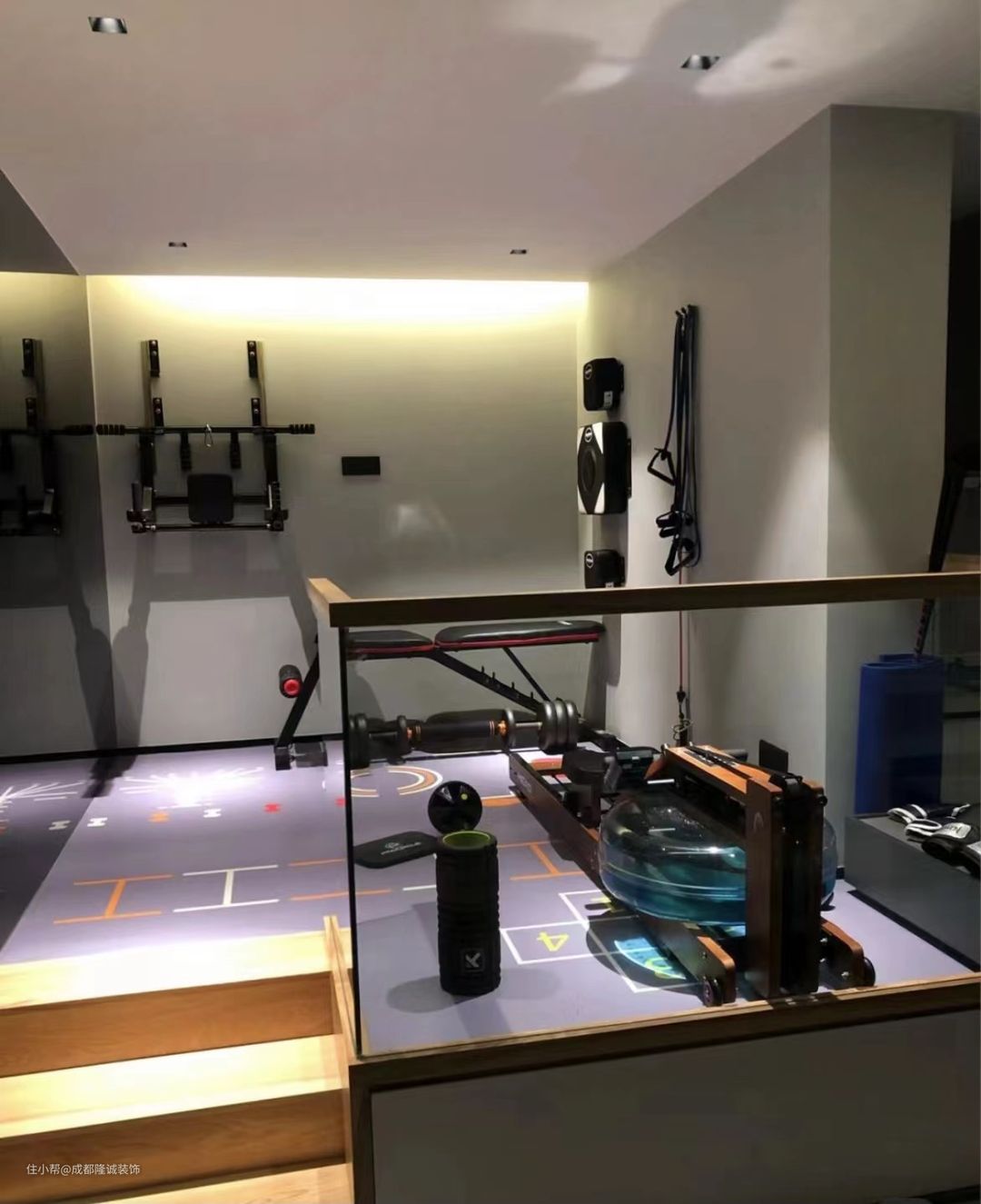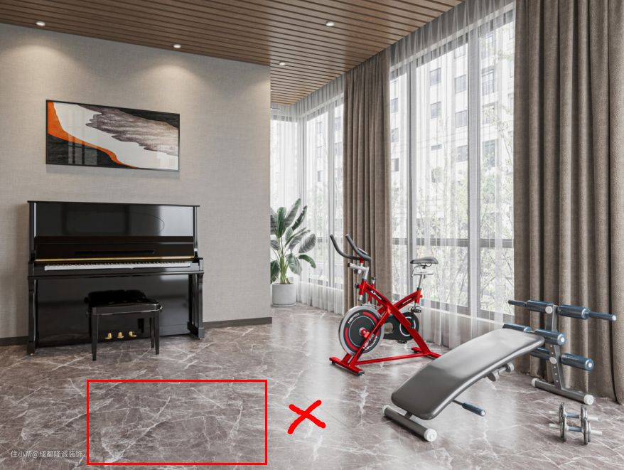健身房因为器物重量较大,所以不要铺设地暖(老实说,铺了应该也用不上吧,谁运动的时候还开暖气啊),且地面不能有架空层,一定要是实地板。