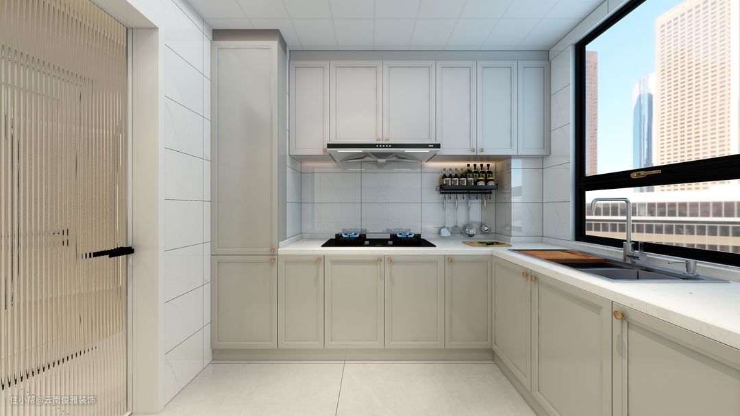 厨房位置设计光线充足,窗外风景一览无遗,营造了使人身心放松且愉悦的环境。