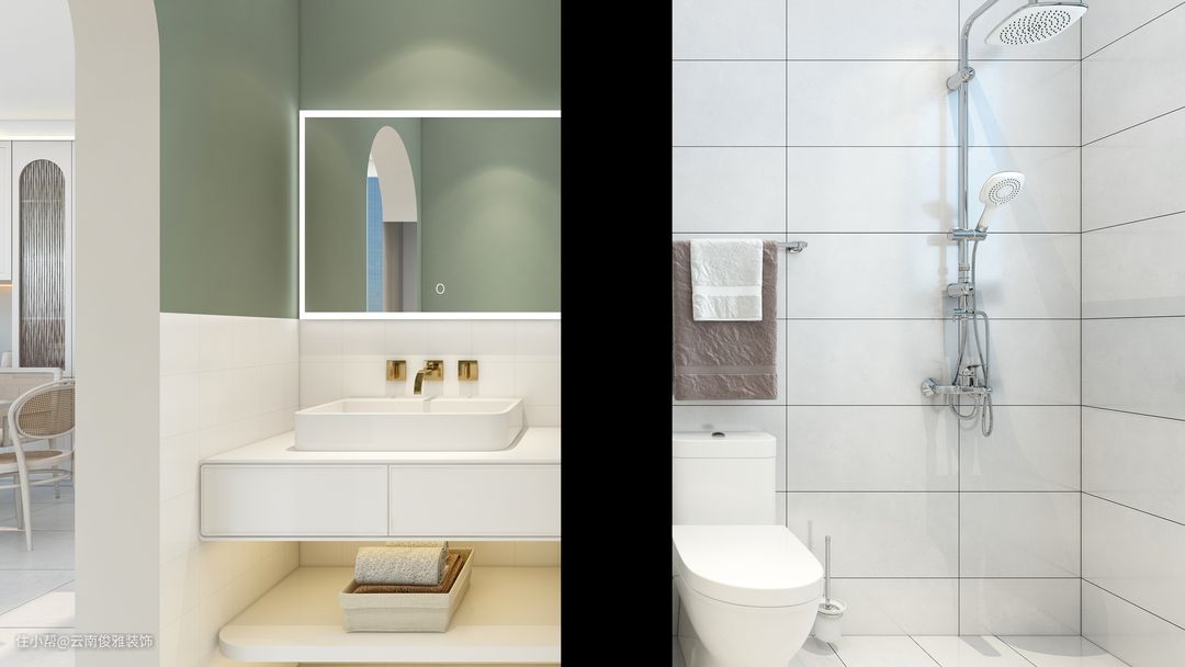 淋浴间与洗手台间隔分明,显得更加干净舒适又大方。