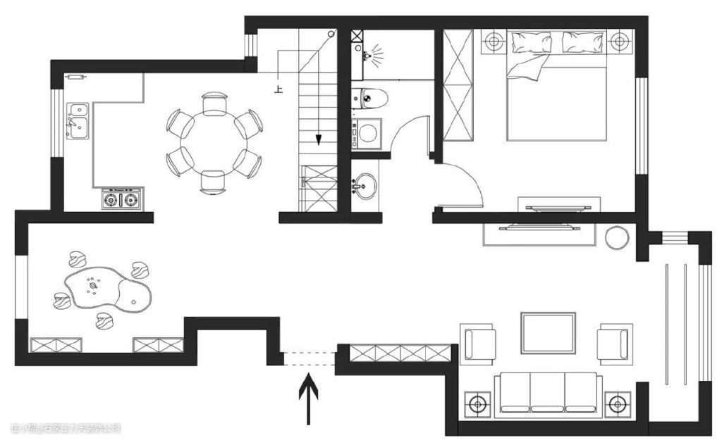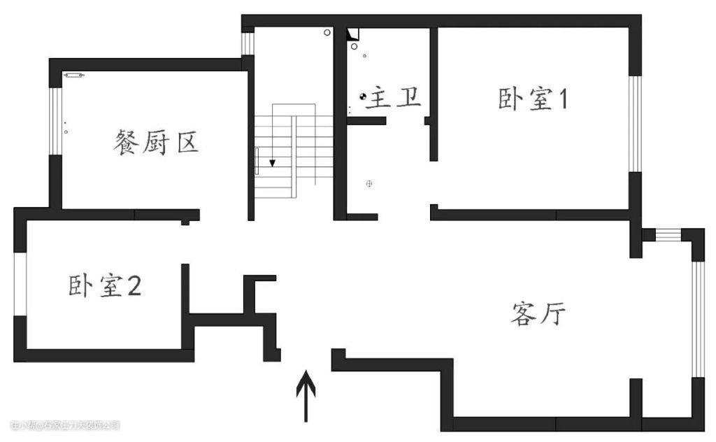 ●一层空间面积足够,但功能区划分不合理,后期需要根据主人的生活习惯及要求进行重新布局;