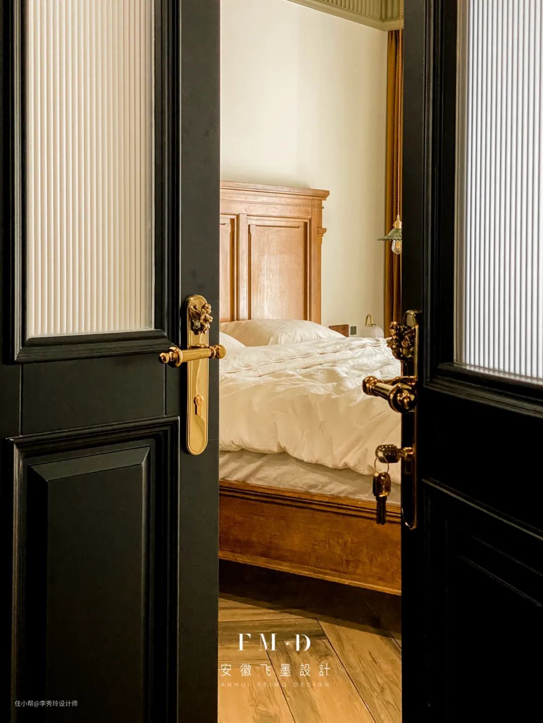 卧室墙面完全延续客厅的格调,科技橡木木皮和鱼尾灰色混油护墙组合呈现,给予卧室最安静祥和的休息氛围。除了精湛完美的定制现场外,位于【香樟雅苑】的项目也在本周拍摄了毕业照。