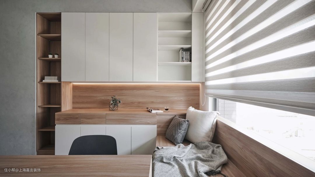卧室除了休息的功能,通过适当的规划,也能被赋予书房的机能。透过色块的区隔,在同一个空间中划出睡眠与阅读的场域,省去不必要的立隔间,保留空间简洁、宽敞;这样的设计也很适合在孩子的房间,让孩子们在房间内就能完成作业或是发展自己的兴趣。