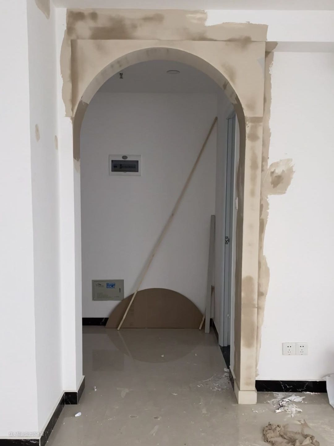 ①拱形门一定要以圆弧为中心做正圆形,扁圆形会非常丑,这个地方很多工人就会踩坑,一定要注意了。