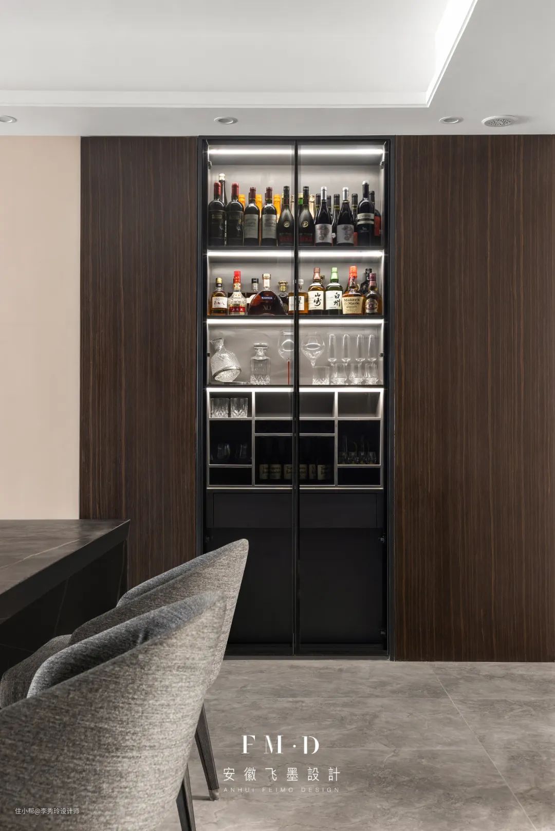 对于爱喝酒的业主来说,餐边柜还可以规划为酒柜。