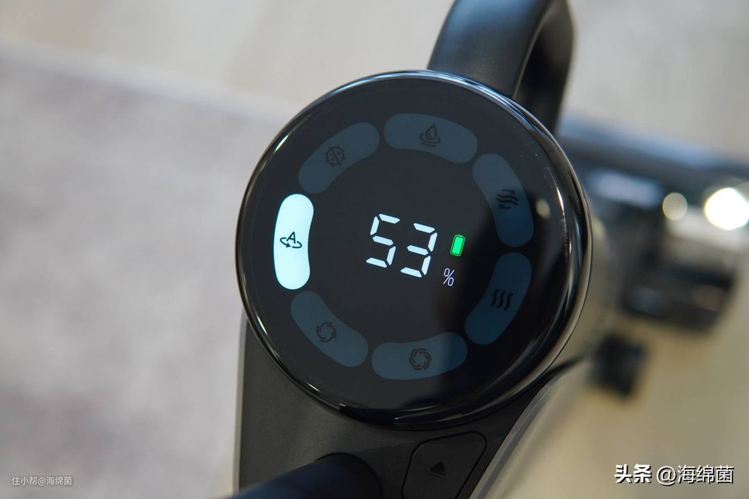 点按手柄开关开机后选择相应模式,可以在自动模式,除菌模式和吸水模式中切换,大液晶屏看着非常清晰直观。