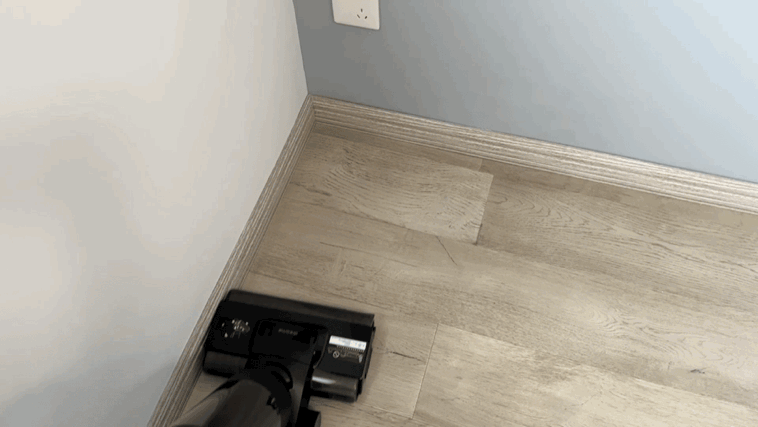 至于贴边清洁效果,实测一下就非常直观了,我在墙边洒了一些面粉,洗地机一遍过之后看不到一点残留,可谓真贴边清洁了。