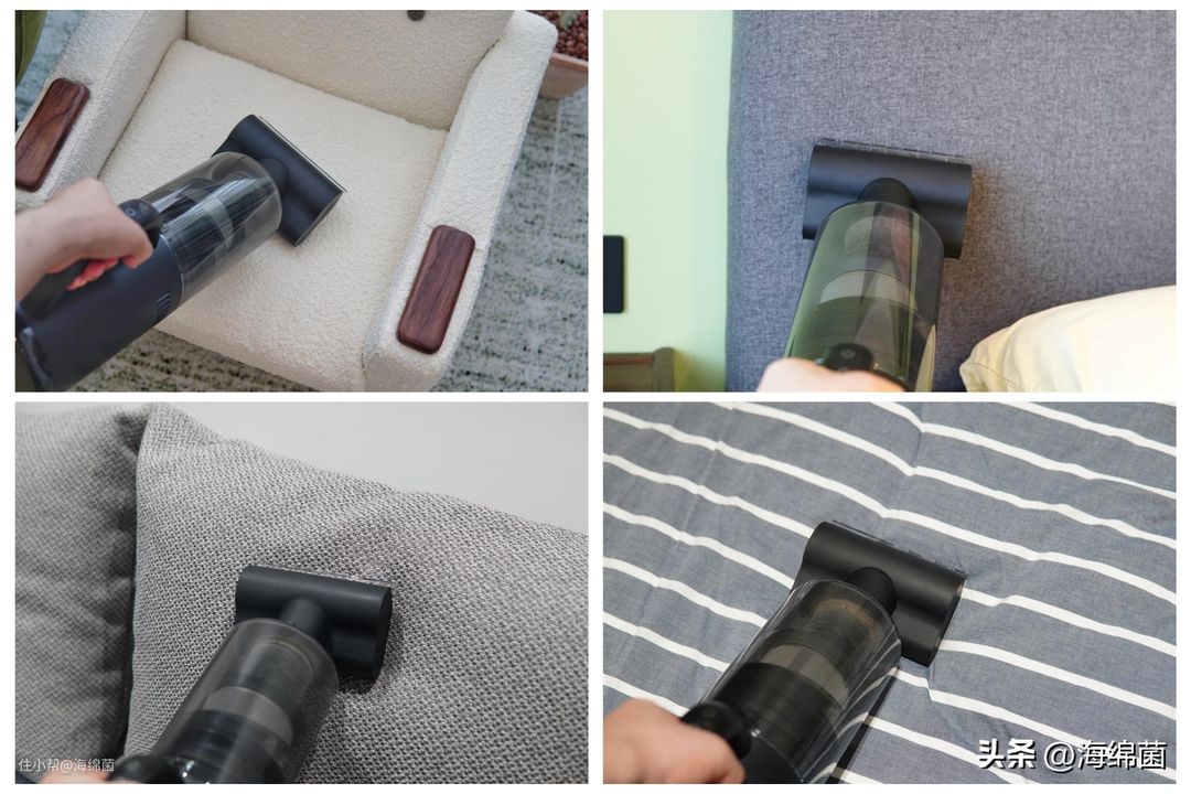 可以清洁常见的纺织物表面,包括沙发,抱枕,床靠,被子等等,有效去除附着的毛发,螨虫和粉尘,如果家里有宠物的,宠物毛发也能顺利去除。