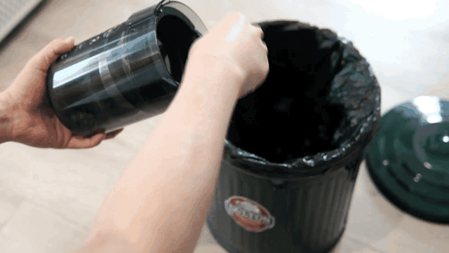 最后清理尘盒的步骤也很简单,取出滤芯后倾倒尘桶就行。