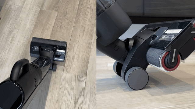 洗地机往随手吸的转变也非常简单,取下主机,装上尘盒,再插上需要使用的吸头就完成了“变形”。