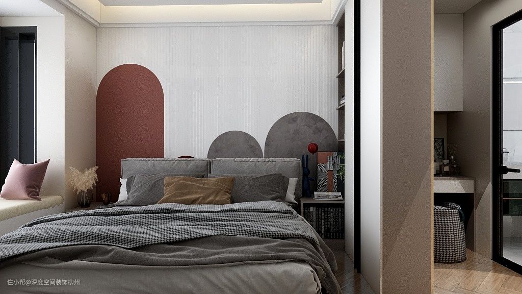 在设计规划上,家具不是非得弄得非常繁琐,再加上整个卧室空间如果就是一张床和一张床头柜,那么看上去也会更干净整洁,更利于增强通风。