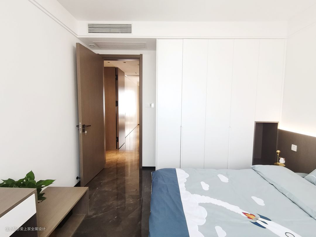 卧室里最重要的当然就是床,所以床一定要舒适,即使是小面积的卧室,床也不能随意,这样需要突出极简风格重点就在于衣柜了,衣柜的主要功能是收纳,其次是美观,定制的白色极简风衣柜,空间大满足收纳需求之外,与原木色床头相搭配,突出简约风格。