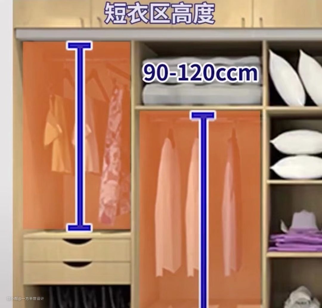 挂衣区 分短衣区和长衣区,短衣区高度90-120cm