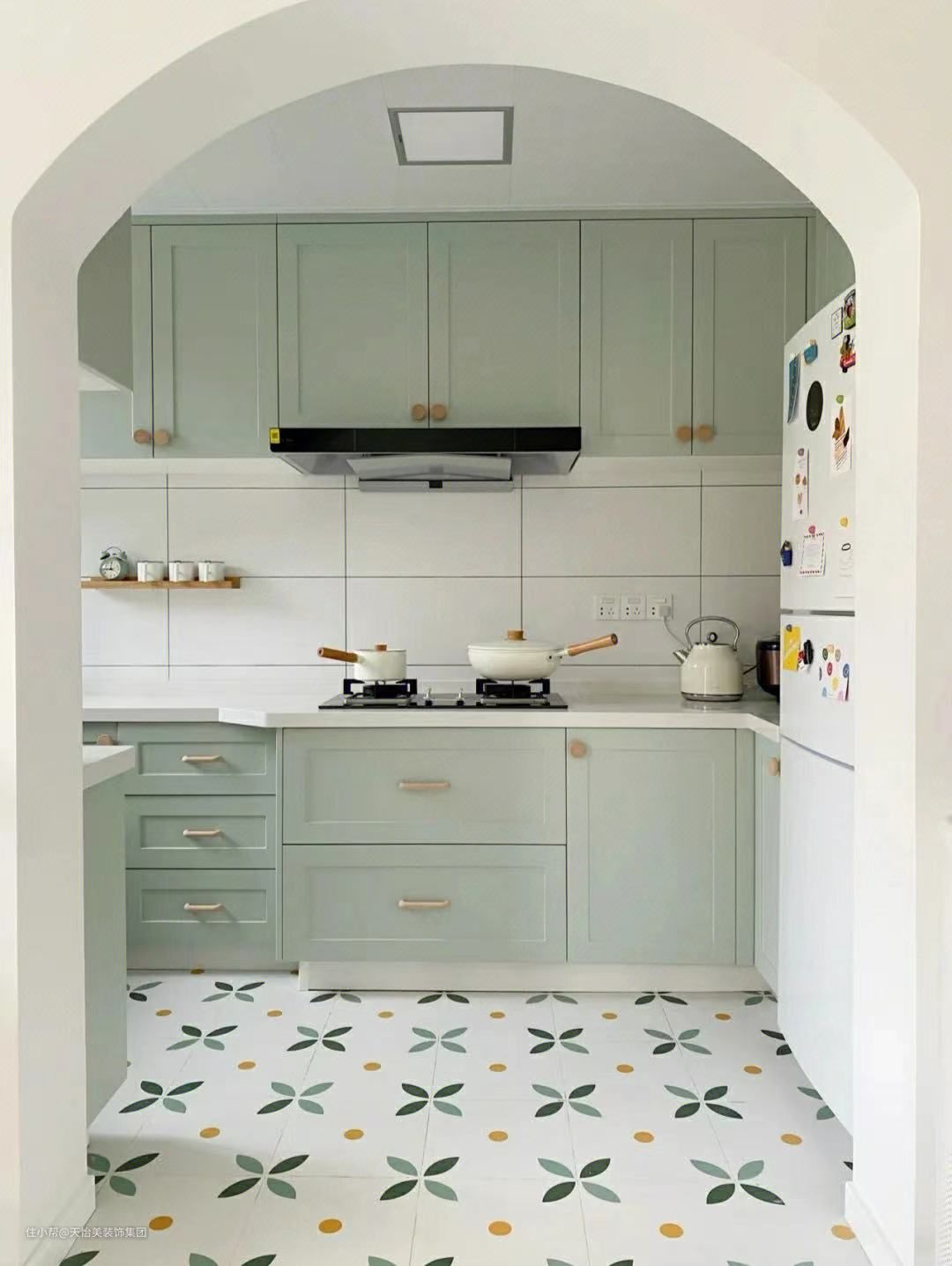 几何纹会比较简约,搭配起来更简单,适合大多数风格。喜欢清新的感觉,就选简单不会出错的花草纹,搭配同色系的橱柜颜值爆增。