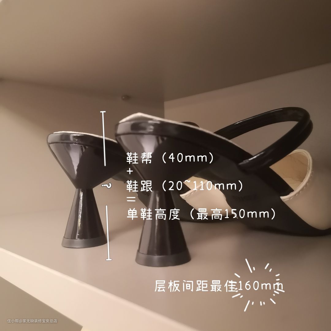 鞋子本身的尺寸高度不一,层板间距160mm显然不能满足所有类型鞋子的收纳,如果你要做定制鞋柜,一定要告诉商家:“打排钻!”