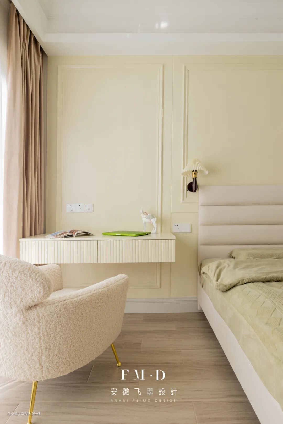 对于有梳妆或办公学习需求的卧室来说,可以用梳妆台或书桌代替床头柜: