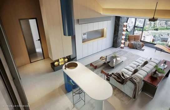低调又高级的灰色系,自然光下的家不仅大气,采光也很好,全景的落地窗没有人会不喜欢吧,这就是梦想中的大客厅了。旁边的黑色大理石墙面下放壁炉,为家营造温暖的感觉,