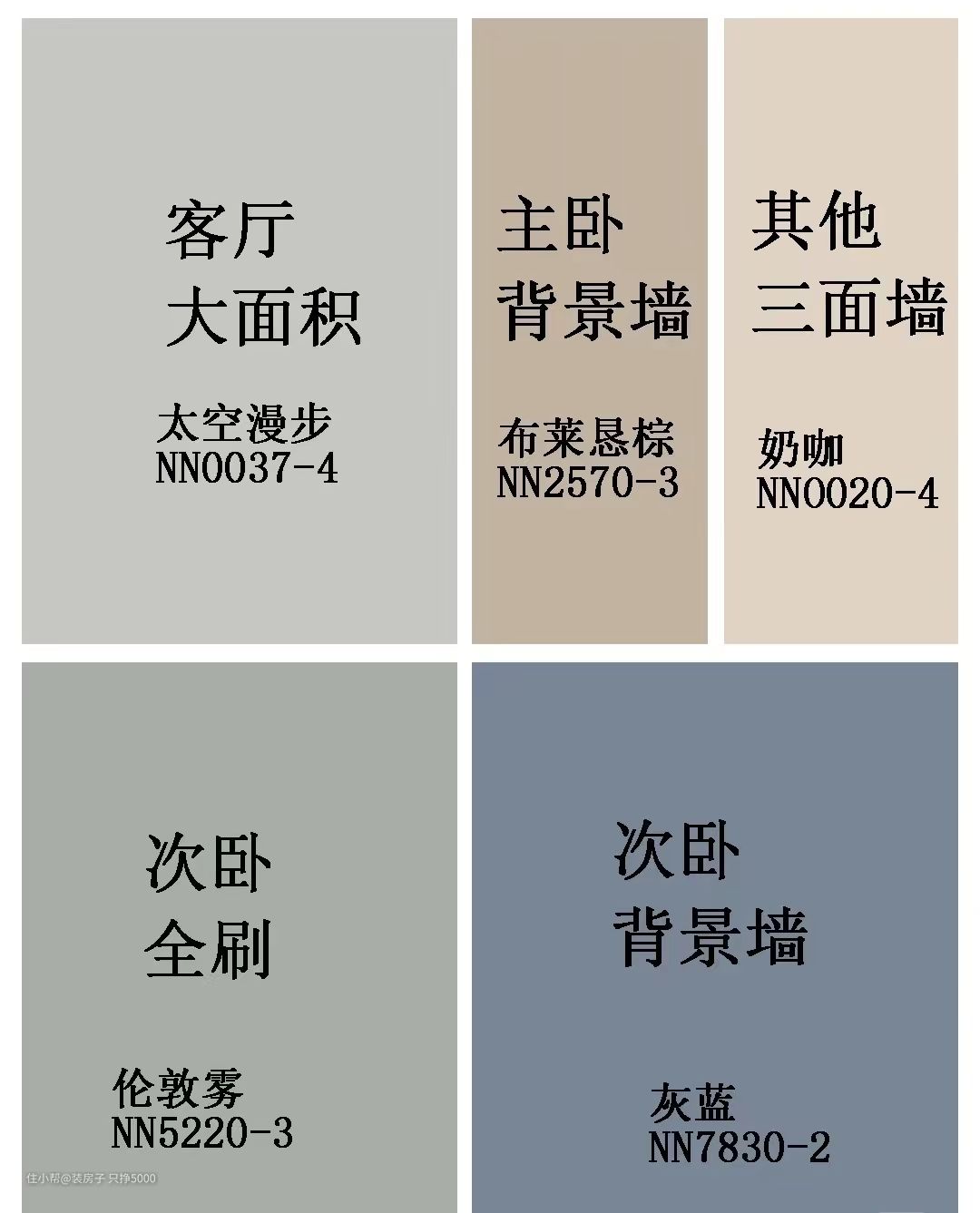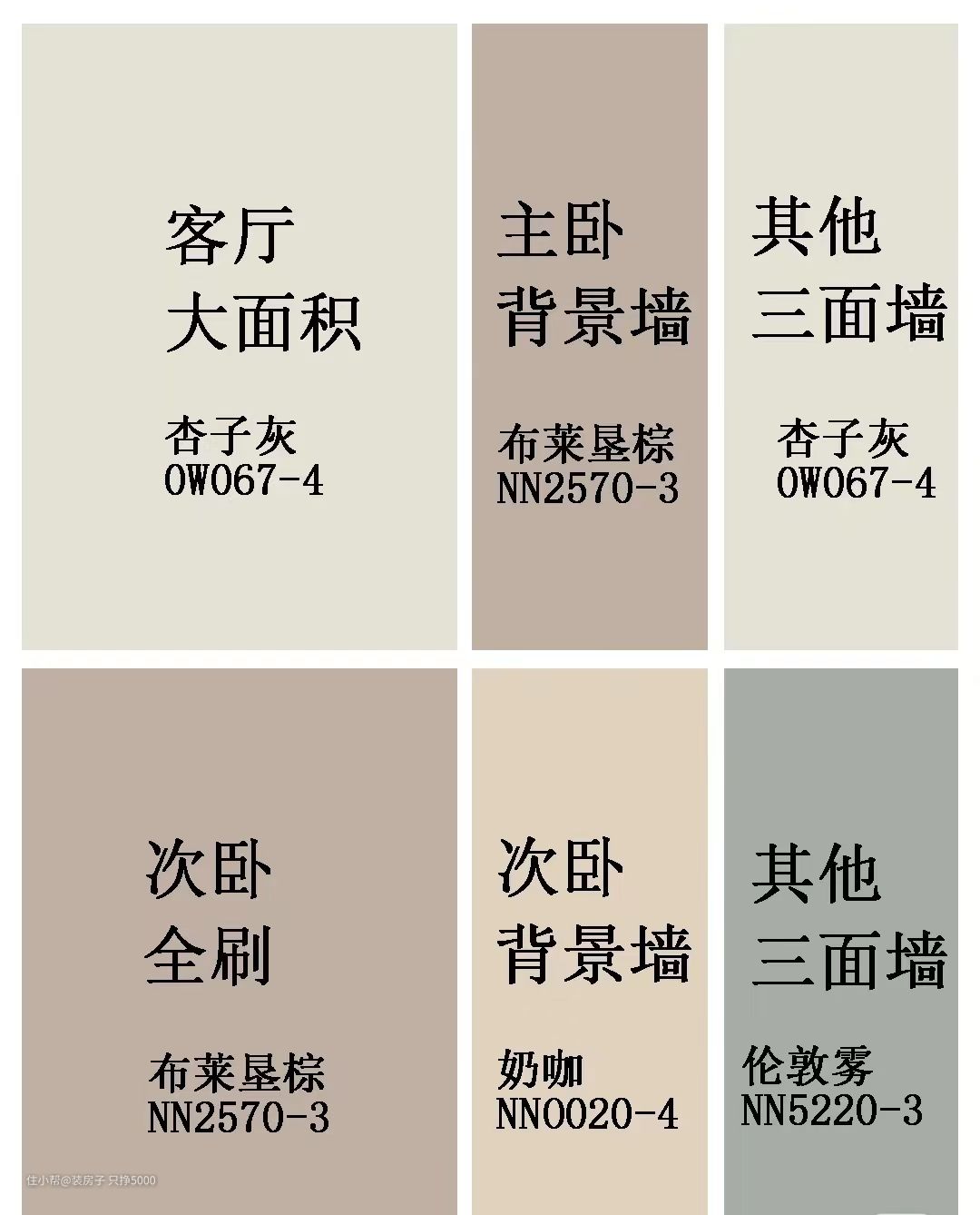 2022年三居全屋乳胶漆配色装房子 只挣50002022-08-182022年三居室乳胶漆配色注意:在网上选好喜欢的乳胶漆颜色,在刷乳胶漆之前要去现场让油工师傅现场调漆试刷,确保刷上去的颜色是你喜欢的!