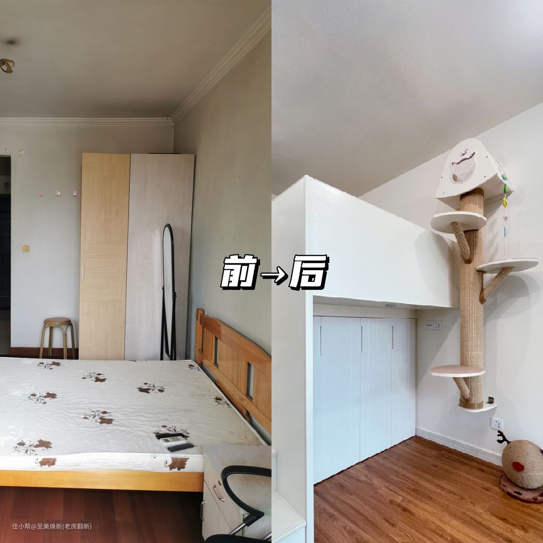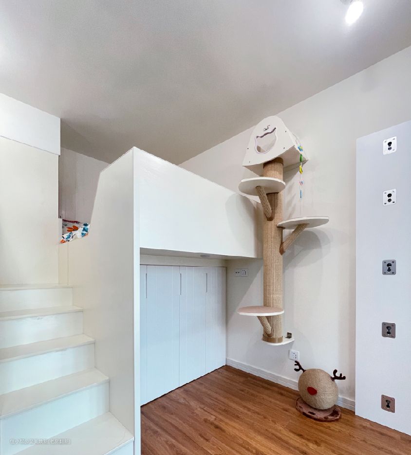 猫爬架不做落地式,悬空靠墙设置,给小姐姐的猫猫一个玩耍的空间。