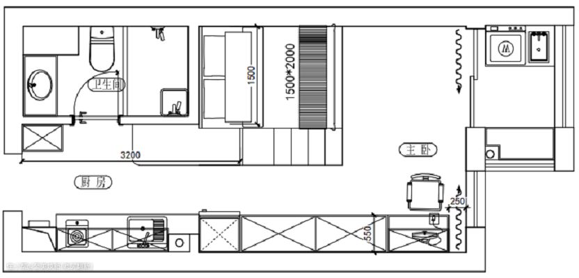 1.打掉卧室(兼客厅)的半扇墙壁,让室内实现完全畅通。
