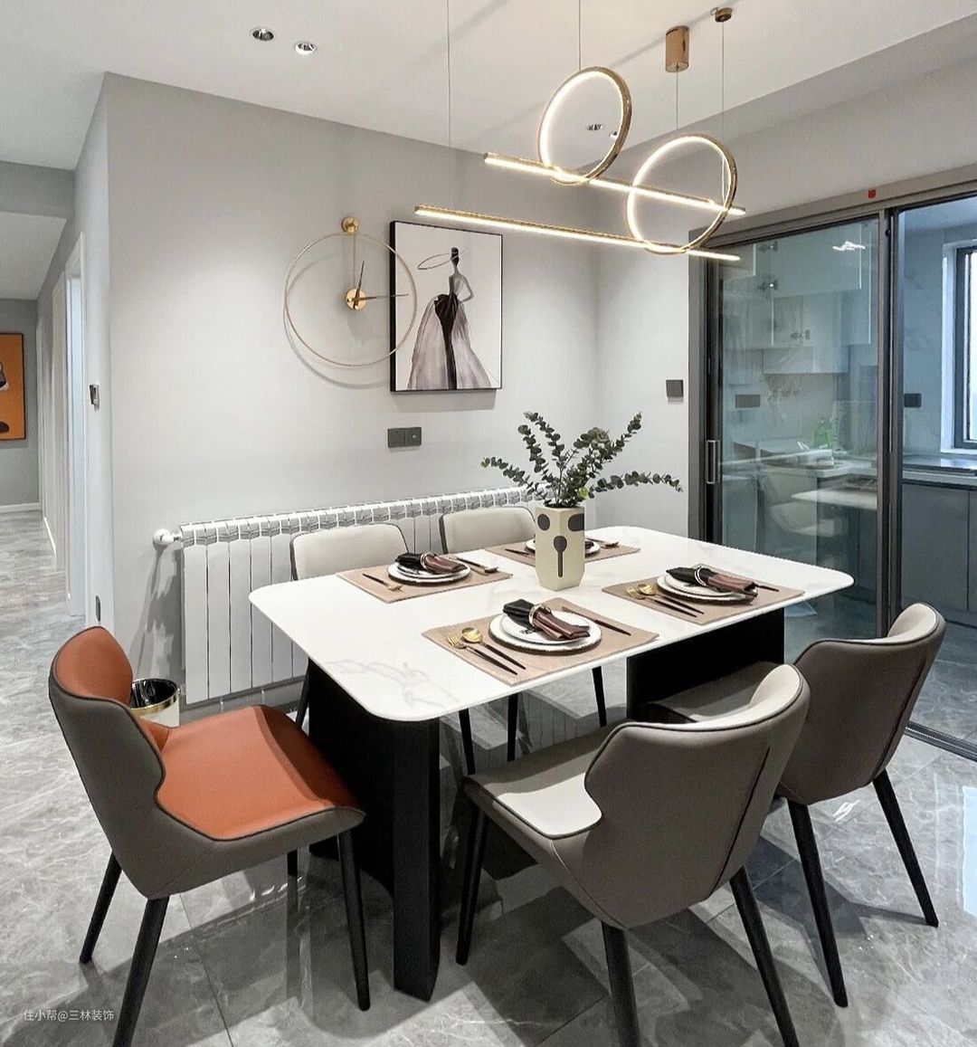 2.大理石元素是轻奢风中用的比较多的元素,最常见的就是大理石餐桌。