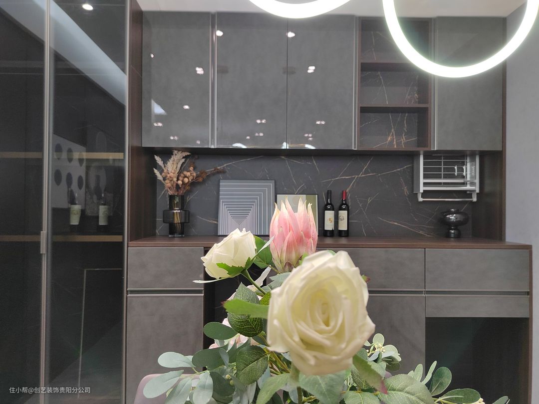 3、装饰作用:一款精致优雅的餐边柜,可以把餐厅的品味提升好几个档次,简单的搭配,零星的点缀,都可以达到眼前一亮的效果。