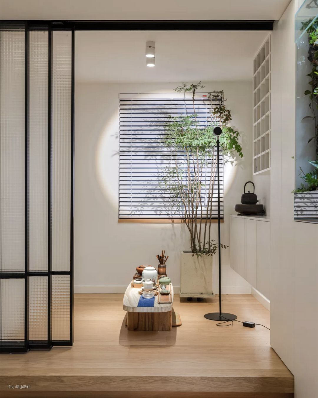 进门的左手边,本是一个小居室,由于女主爱喝茶,遂改为一间茶室。