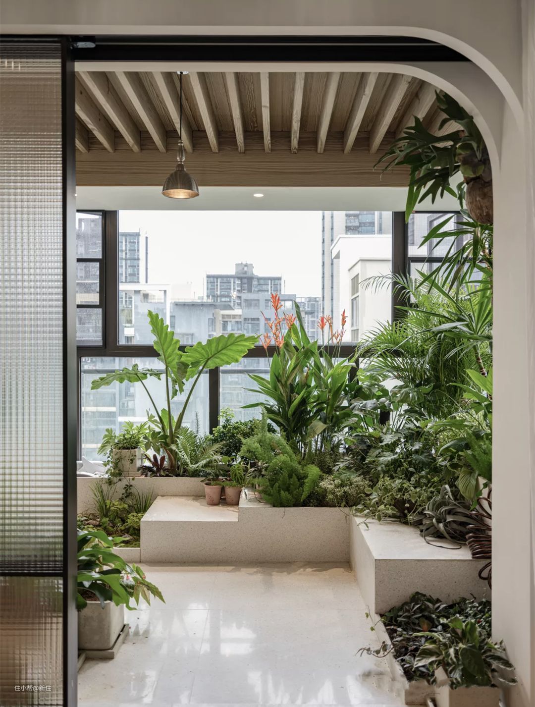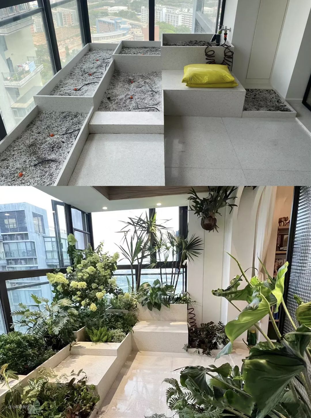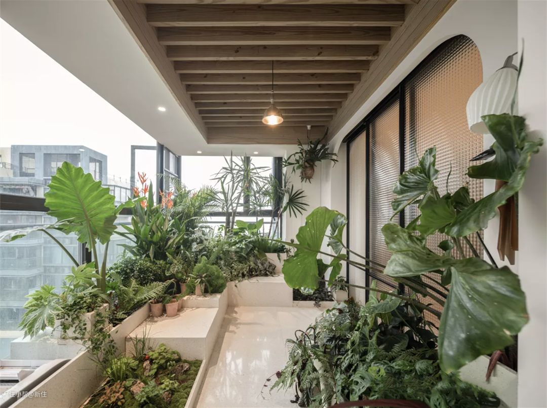 移栽完毕的景观阳台,既有庭轩小筑的郁郁葱葱,又有热带神秘新奇。